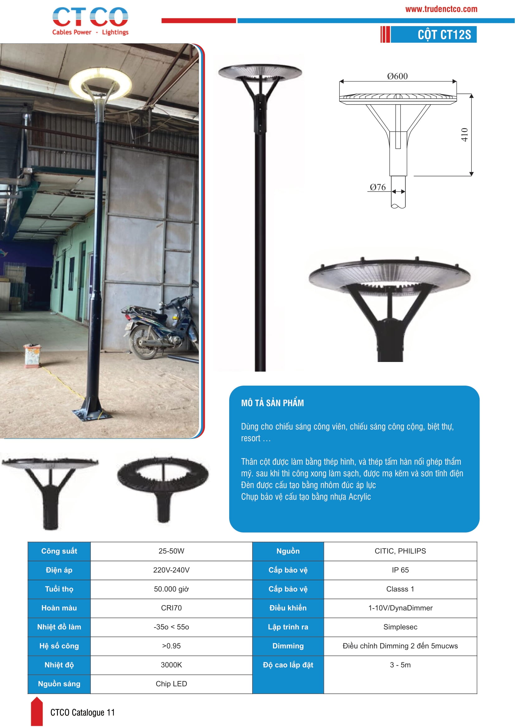 Quy Cách Cột Đèn Sân Vườn 1 Bóng CTG/CT12S