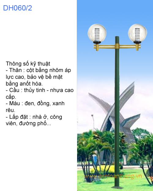 Trụ đèn sân vườn của CTCO Lighting được thiết kế với nhiều kiểu dáng và mẫu mã đẹp nhất hiện nay. Đế cột sân vườn, Cột đèn được làm bằng gang đúc đạt tiêu chuẩn quốc gia về an toàn. Trụ đèn sau khi gia công được làm sạch, sơn chống rỉ và sơn trang trí sơn 2k tạo độ bóng cho sản phẩm. được sơn phủ bên ngoài trang trí Bề mặt được bảo vệ bằng anốt hóa.